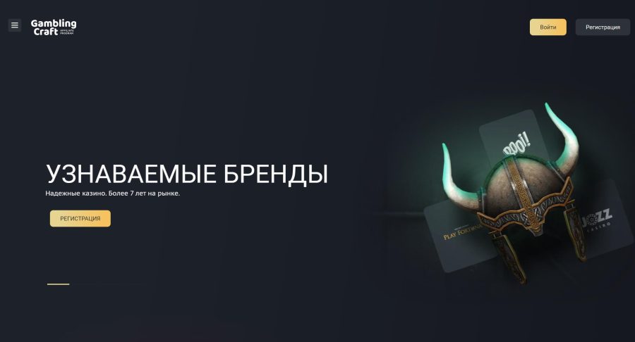 Gambling Craft — партнёрская программа (официальный прямой рекламодатель) брендов Booi, Play Fortuna, Winity и Jozz casino. Работает с тематикой онлайн-казино. Условия сотрудничества: RevShare 20-50%, CPA до 300 USD. Выплаты производят 2 раза в месяц. Отрицательный баланс не переносится (NNCO). Брендовый трафик принимается (разрешен, но процент снижен). Далее детально рассмотрим партнёрку Gambling Craft.