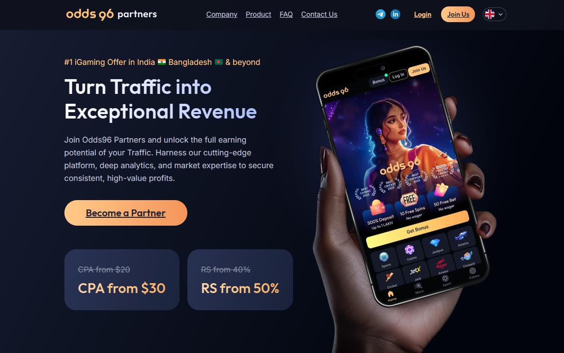 Odds96 Partners — партнёрская программа (официальный прямой рекламодатель) бренда Odds96. Работает с тематикой беттинг (ставки на спорт) и онлайн-казино. Выплаты производят 2 раза в месяц за CPA и еженедельно за RevShare. Отрицательный баланс не переносится (NNCO) — обнуляется. Далее детально рассмотрим партнёрку Odds96 Partners.