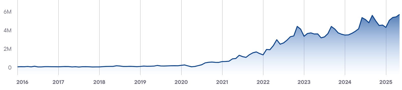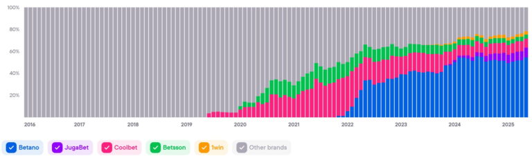 Показывает совокупный уровень вовлечённости и интереса ко всем брендам в стране. Этот показатель служит барометром для индустрии iGaming и объединяет различные индикаторы, чтобы дать общее представление о тенденциях и изменениях на рынке.