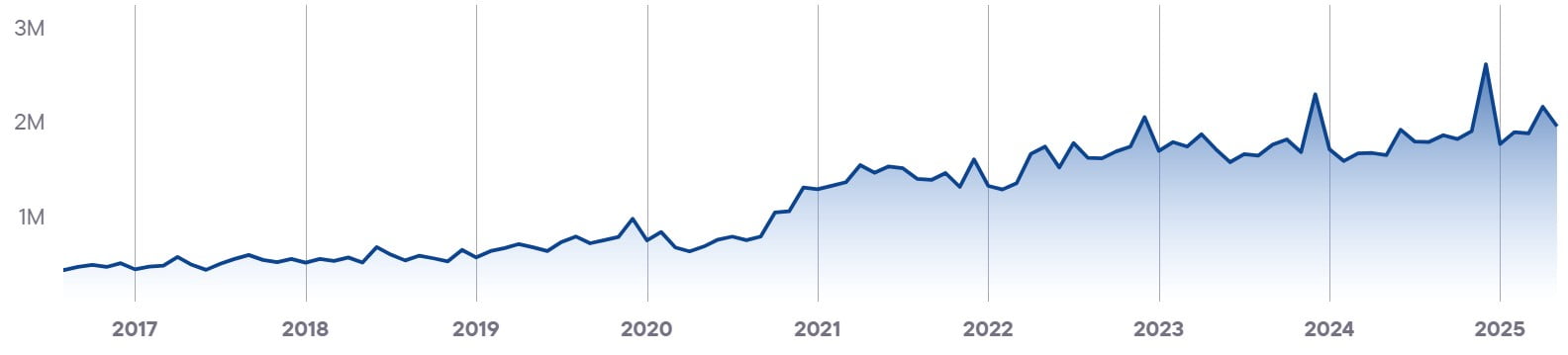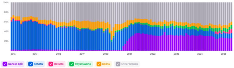 Показывает совокупный уровень вовлечённости и интереса ко всем брендам в стране. Этот показатель служит барометром для индустрии iGaming и объединяет различные индикаторы, чтобы дать общее представление о тенденциях и изменениях на рынке.