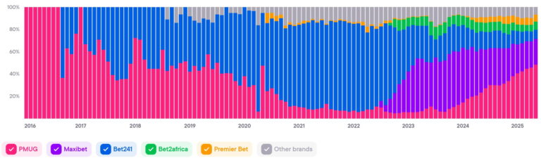 Показывает совокупный уровень вовлечённости и интереса ко всем брендам в стране. Этот показатель служит барометром для индустрии iGaming и объединяет различные индикаторы, чтобы дать общее представление о тенденциях и изменениях на рынке.