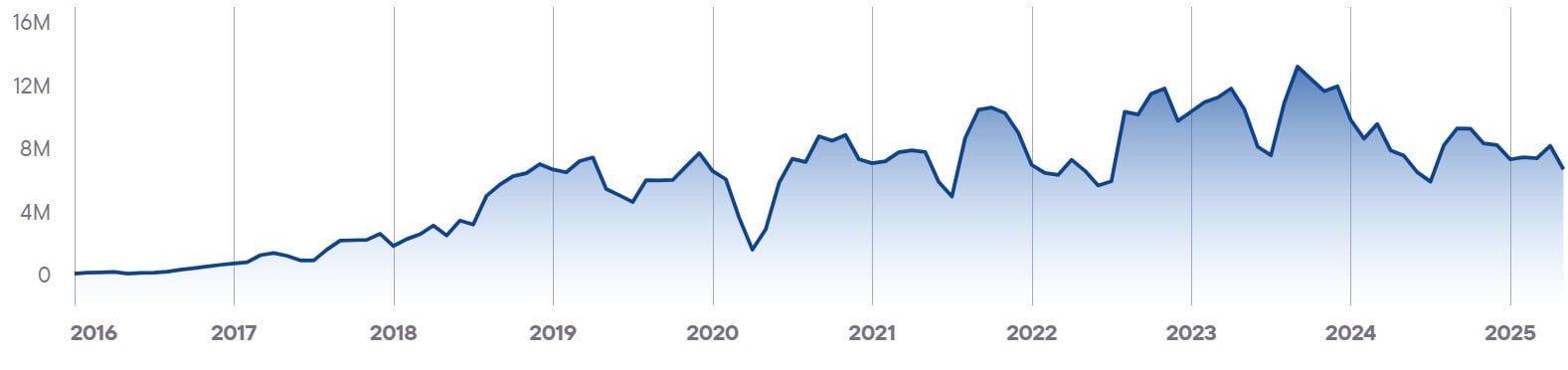 Показывает совокупный уровень вовлечённости и интереса ко всем брендам в стране. Этот показатель служит барометром для индустрии iGaming и объединяет различные индикаторы, чтобы дать общее представление о тенденциях и изменениях на рынке.