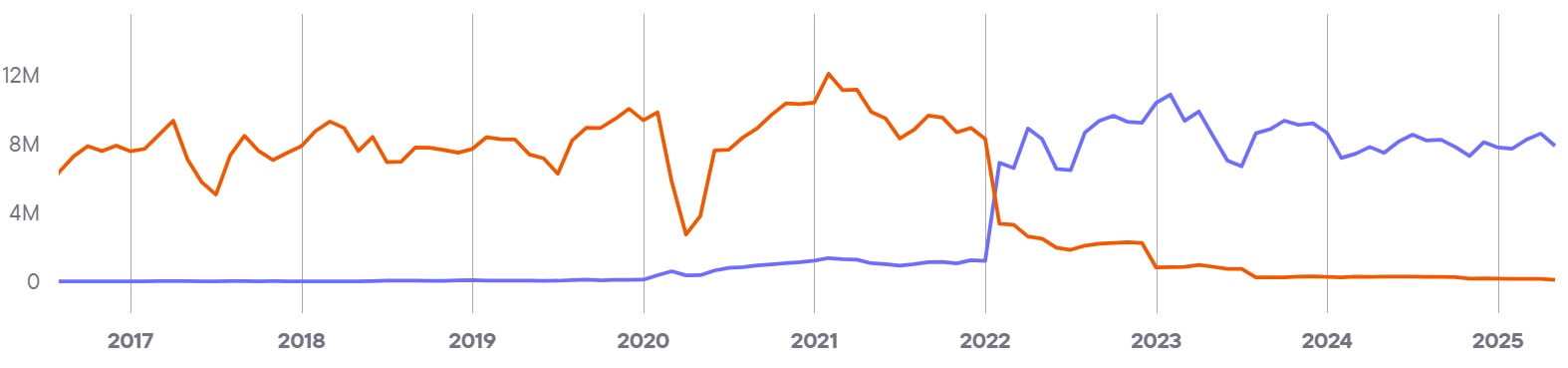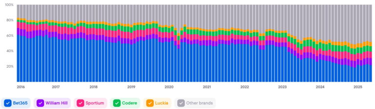 Показывает совокупный уровень вовлечённости и интереса ко всем брендам в стране. Этот показатель служит барометром для индустрии iGaming и объединяет различные индикаторы, чтобы дать общее представление о тенденциях и изменениях на рынке.
