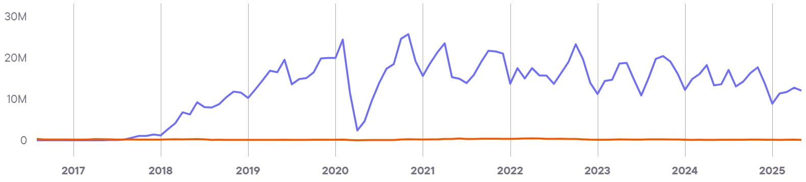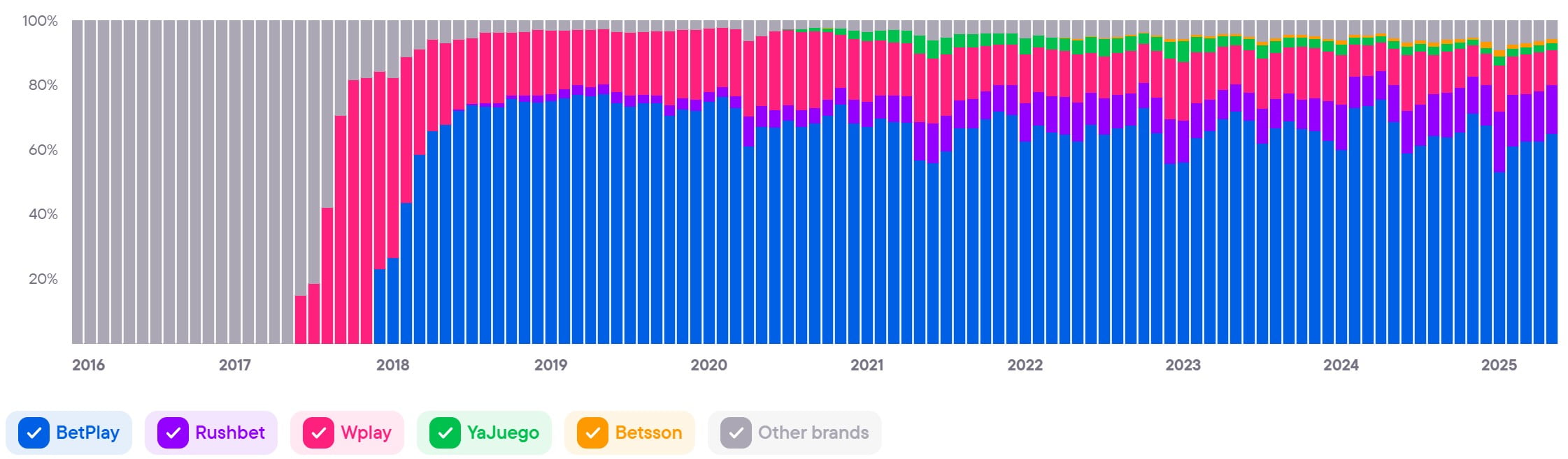 Показывает совокупный уровень вовлечённости и интереса ко всем брендам в стране. Этот показатель служит барометром для индустрии iGaming и объединяет различные индикаторы, чтобы дать общее представление о тенденциях и изменениях на рынке.