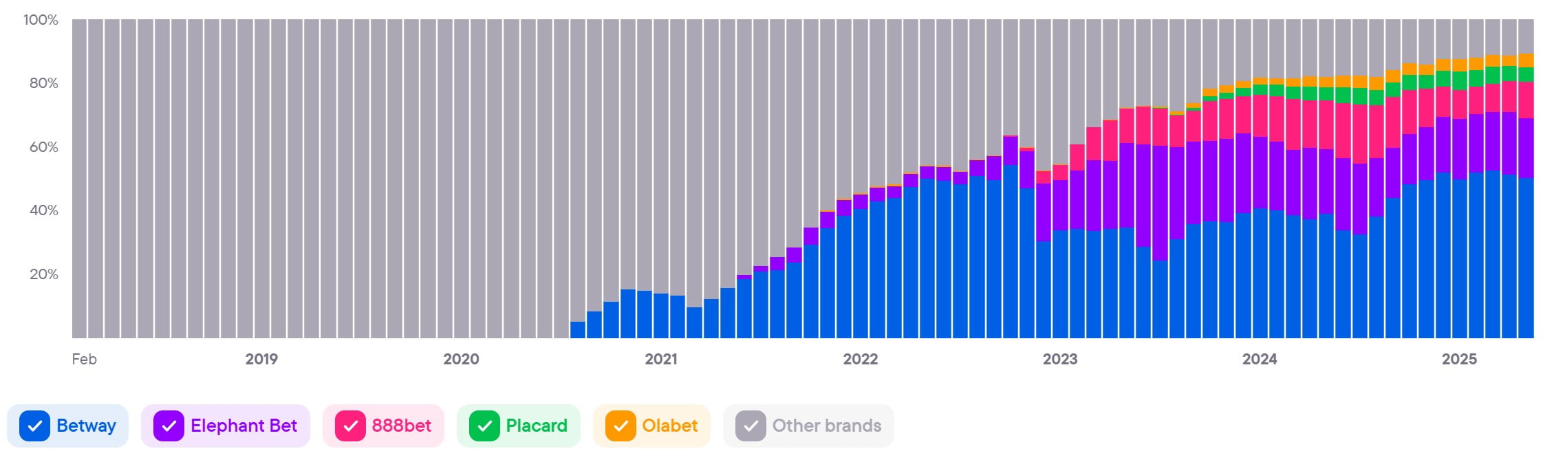 Показывает совокупный уровень вовлечённости и интереса ко всем брендам в стране. Этот показатель служит барометром для индустрии iGaming и объединяет различные индикаторы, чтобы дать общее представление о тенденциях и изменениях на рынке.