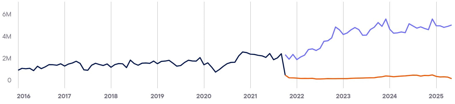 Показывает совокупный уровень вовлечённости и интереса ко всем брендам в стране. Этот показатель служит барометром для индустрии iGaming и объединяет различные индикаторы, чтобы дать общее представление о тенденциях и изменениях на рынке.