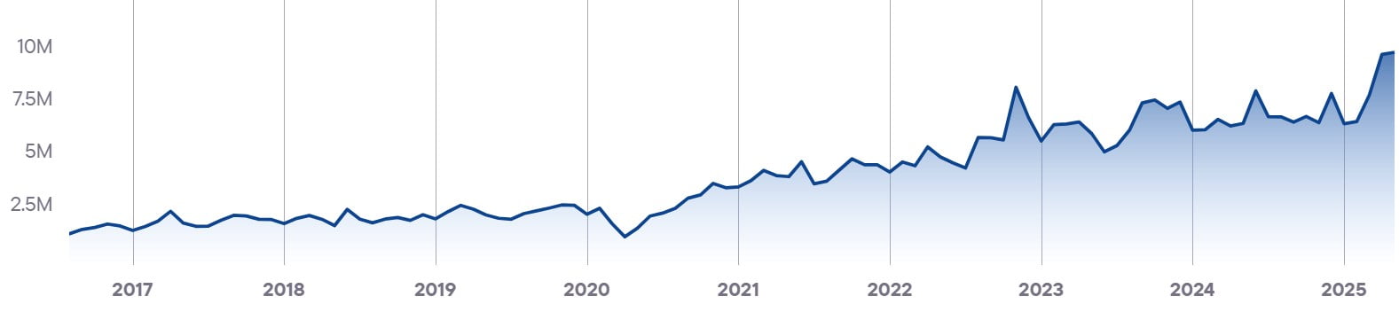 Показывает совокупный уровень вовлечённости и интереса ко всем брендам в стране. Этот показатель служит барометром для индустрии iGaming и объединяет различные индикаторы, чтобы дать общее представление о тенденциях и изменениях на рынке.