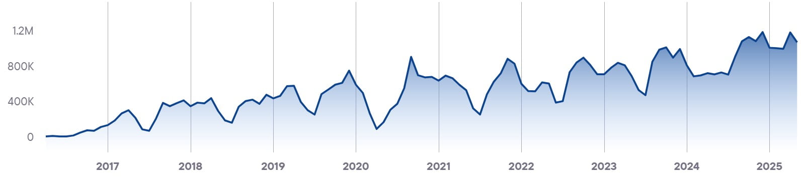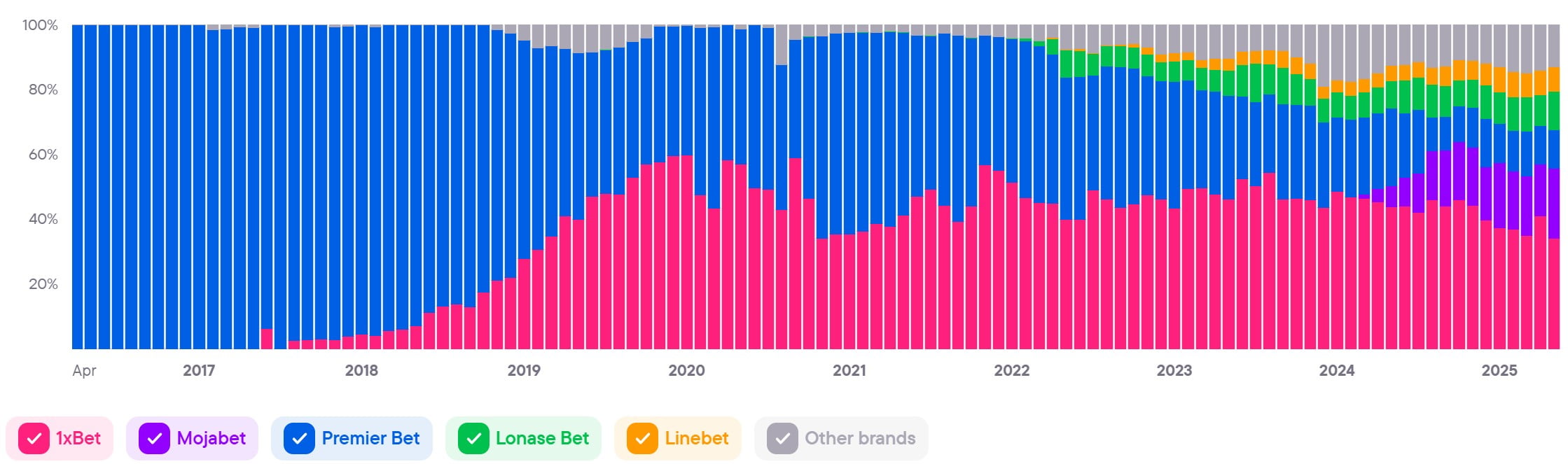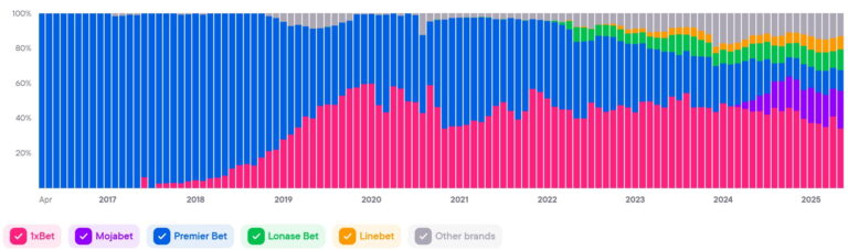 Показывает совокупный уровень вовлечённости и интереса ко всем брендам в стране. Этот показатель служит барометром для индустрии iGaming и объединяет различные индикаторы, чтобы дать общее представление о тенденциях и изменениях на рынке.
