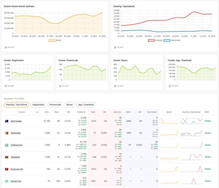 Аналитика по ключевым запросам: бренды, игры, провайдеры