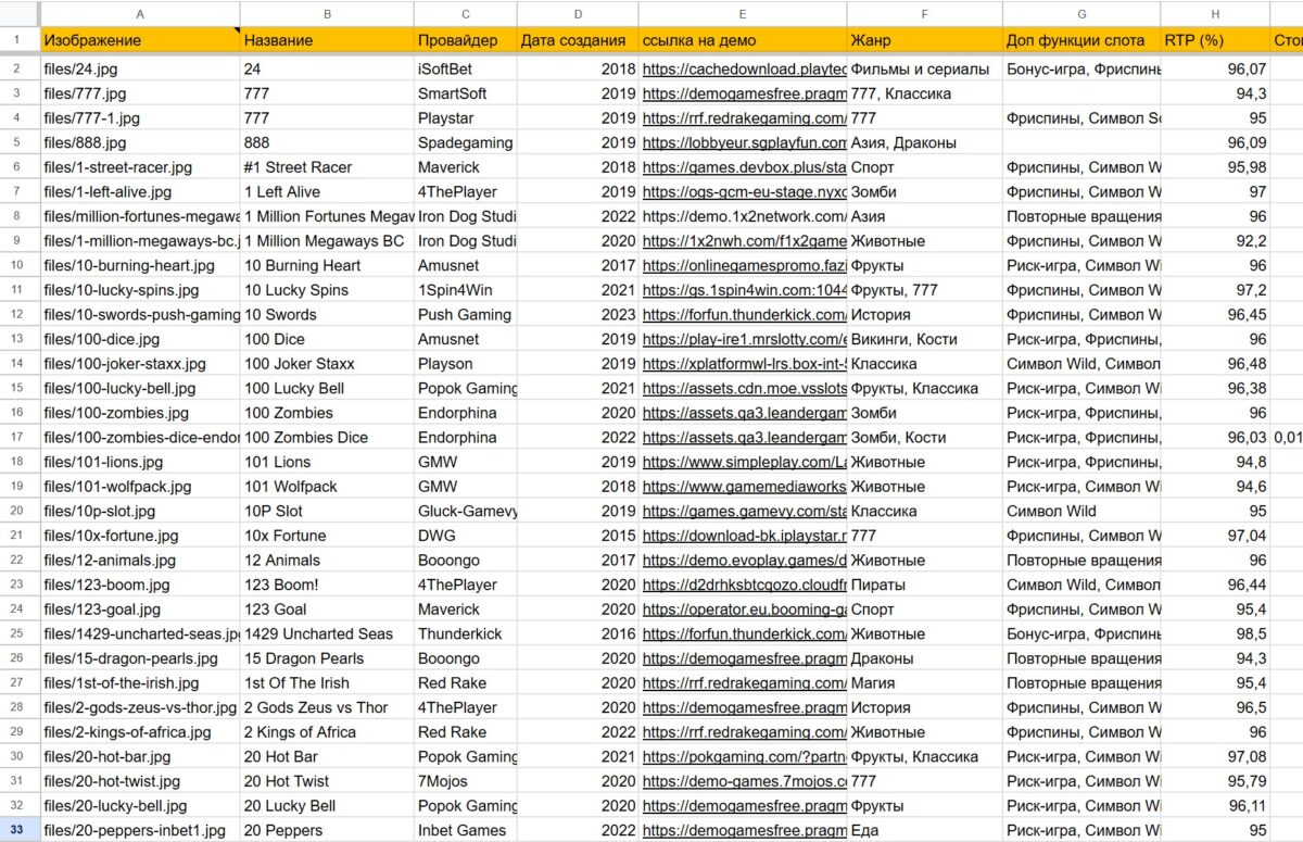 Excel таблица с характеристиками и данными по 4600 игровым автоматам: