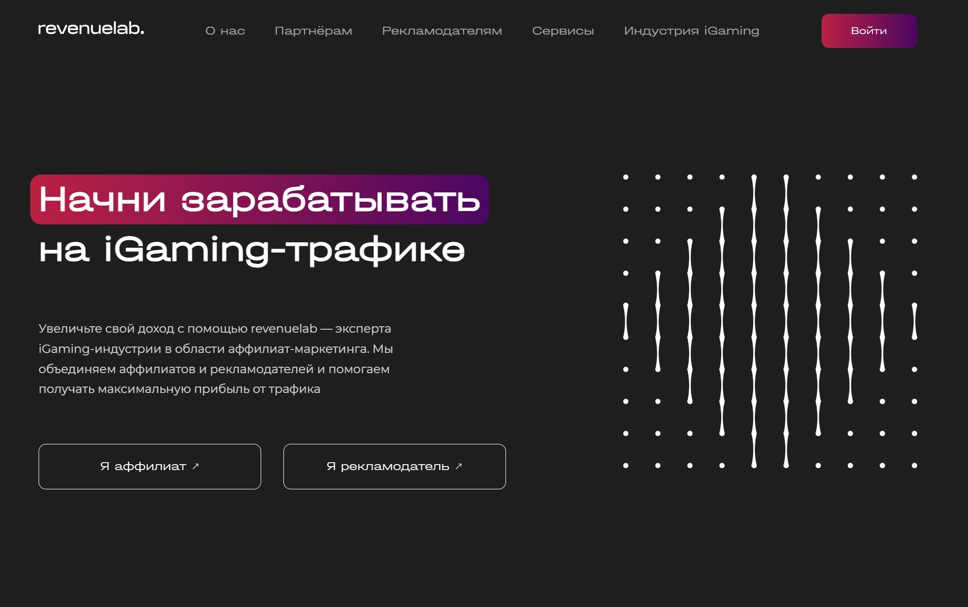 If you are looking for a reliable platform for cooperation, pay attention to RevenueLab. This model allows you to participate in 305 different offers, offering lucrative conditions under CPA, Hybrid and RevShare schemes. The company's specialization is particularly interesting: it focuses on the iGaming vertical, which opens up a wide range of opportunities for attracting clients in this area.