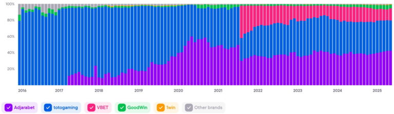 *BAP (Brand's Accumulated Power) - accumulated brand power, reflects the brand's share of consumer interest in the online gambling market. The relative presence of a brand in a country. The BAP graph is presented below: