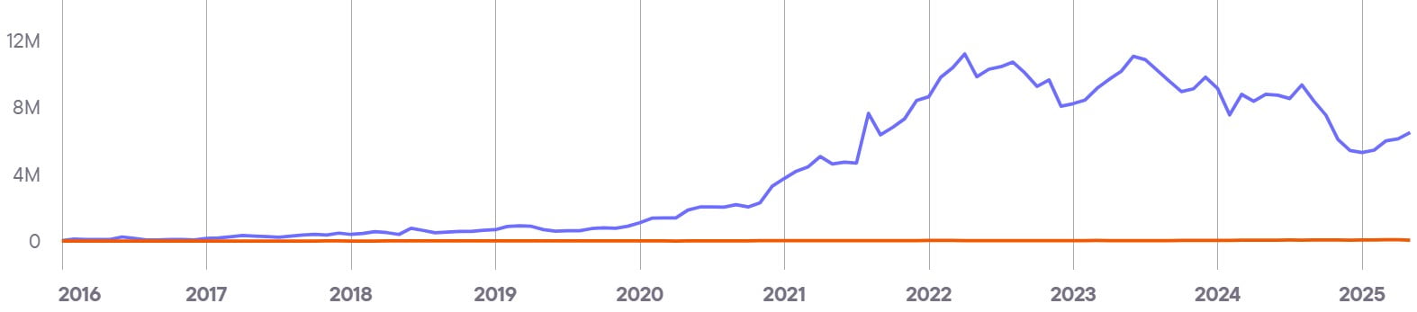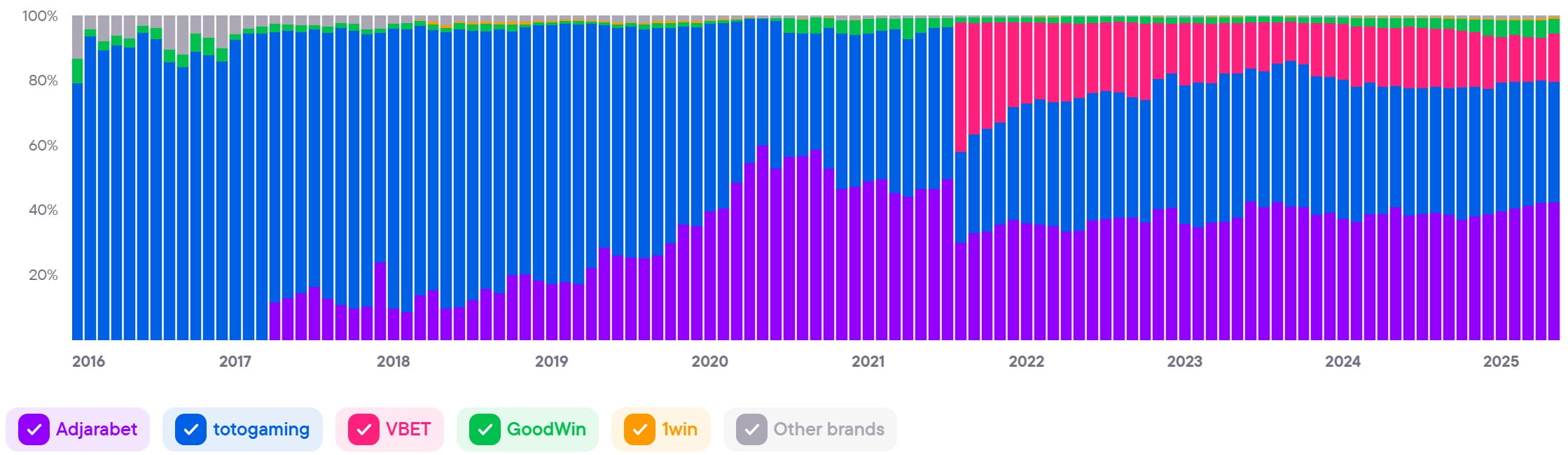 Indicates the aggregate level of engagement and interest in all brands in a country. This indicator serves as a barometer for the iGaming industry and combines various indicators to give an overview of trends and changes in the market.