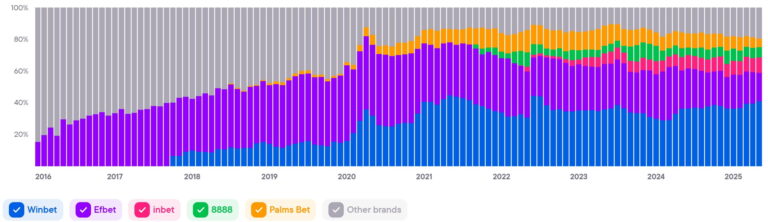The first place in terms of market size is Winbet. It offers both online platforms and land-based gambling establishments.