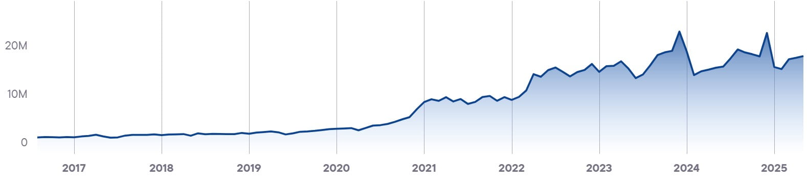 Indicates the aggregate level of engagement and interest in all brands in a country. This indicator serves as a barometer for the iGaming industry and combines various indicators to give an overview of trends and changes in the market.