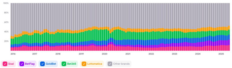 Indicates the aggregate level of engagement and interest in all brands in a country. This indicator serves as a barometer for the iGaming industry and combines various indicators to give an overview of trends and changes in the market.