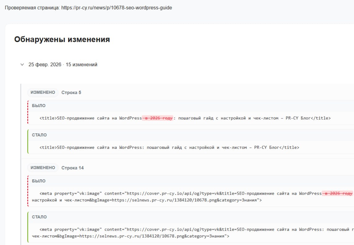 With the help of change monitoring service, you can quickly find the reason: for example, the canonical changed on the new template or the SEO text under the listing disappeared.