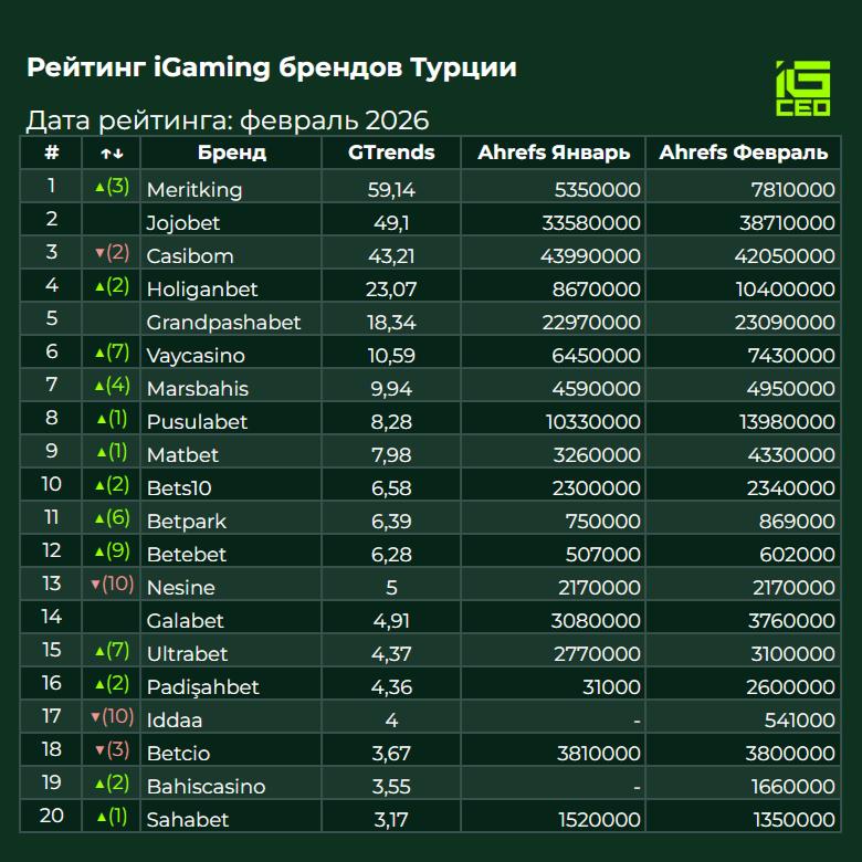 Лидеры рейтинга — Meritking, Jojobet, Casibom.