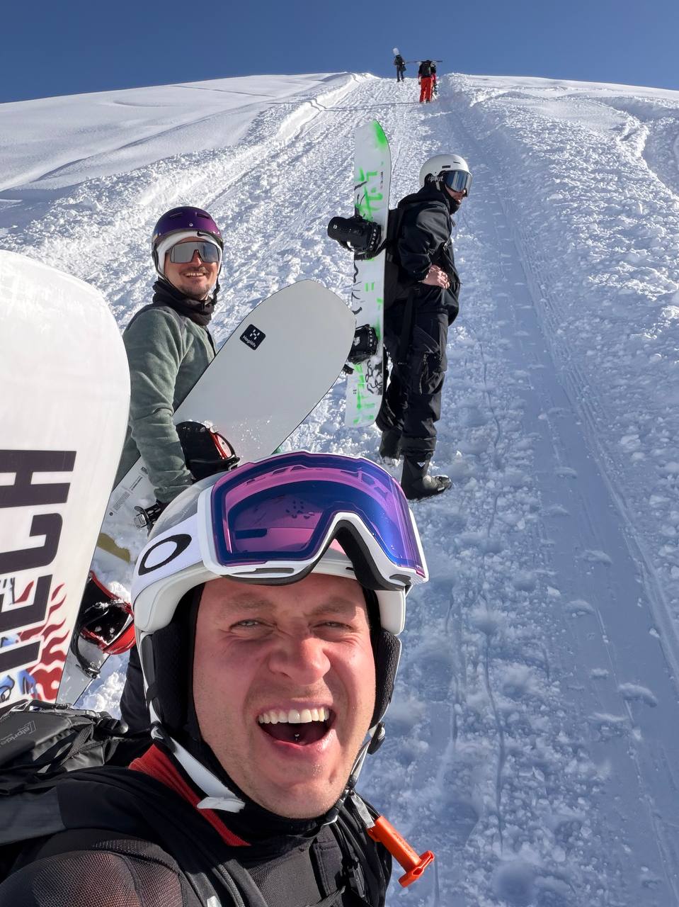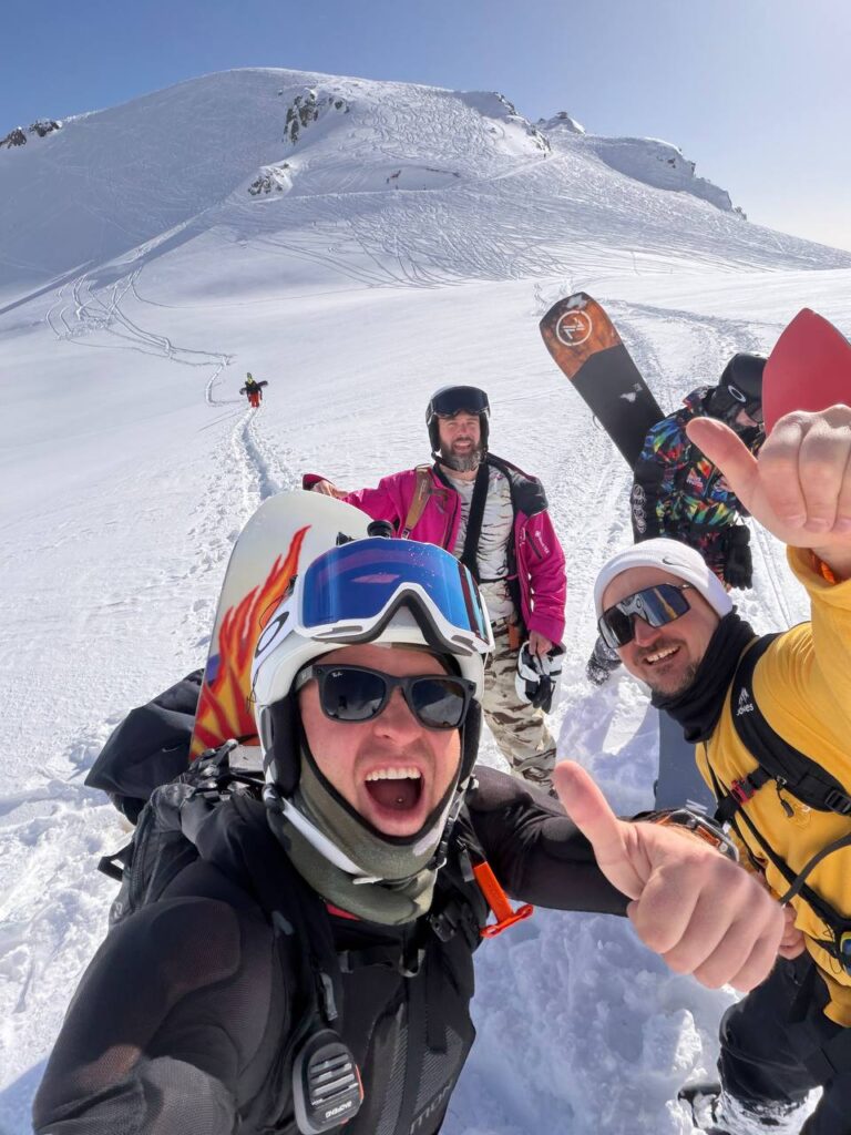 В целом у нас вышло 5 полноценных дней катания, и почти все — со свежаком. Лавинную безопасность проходили, в бэккантри ходили осознанно, без суеты. Когда есть команда и мозги — кайф совсем другой.