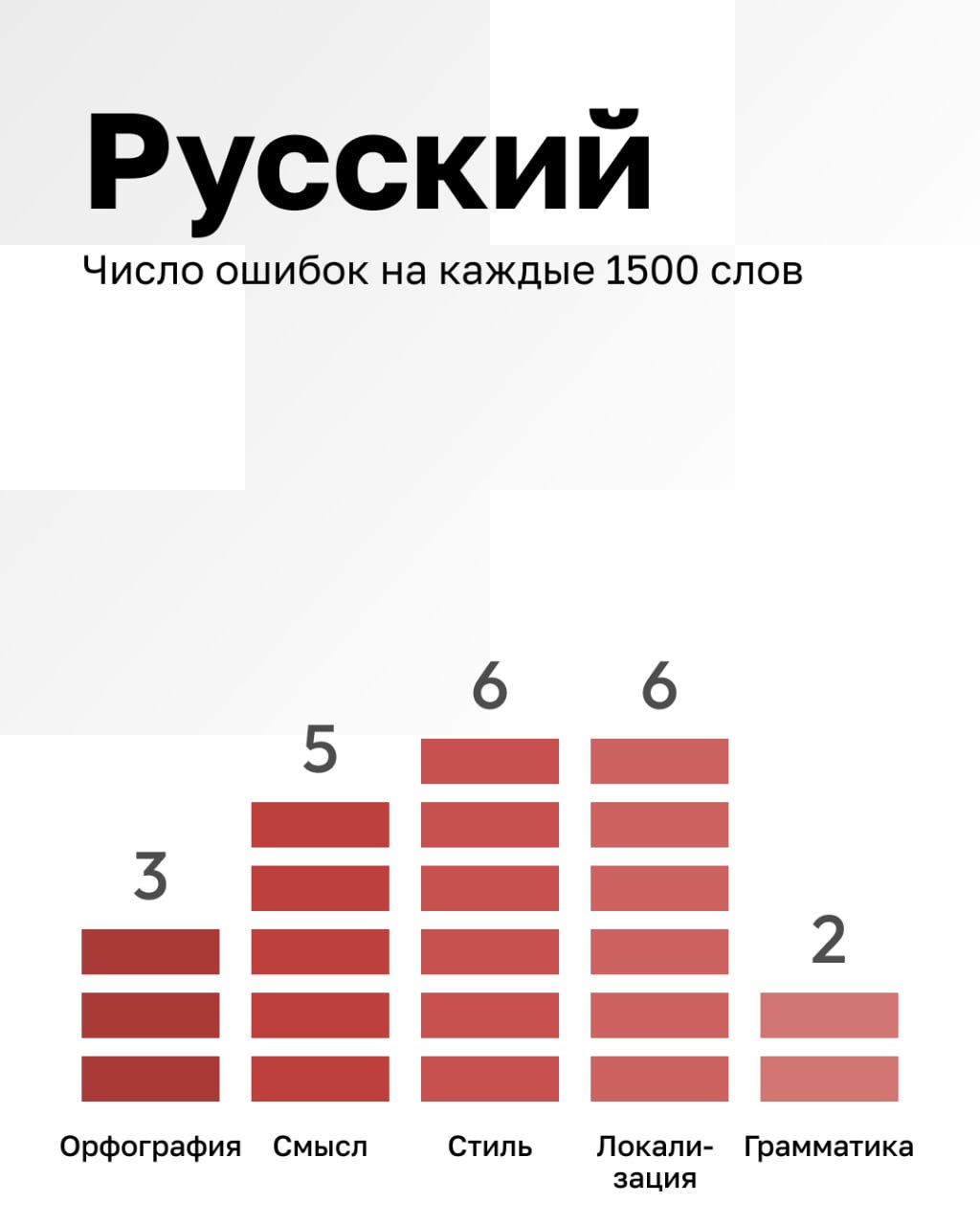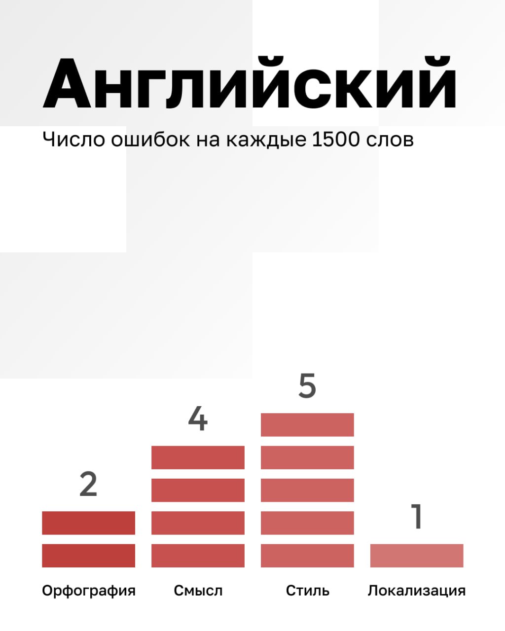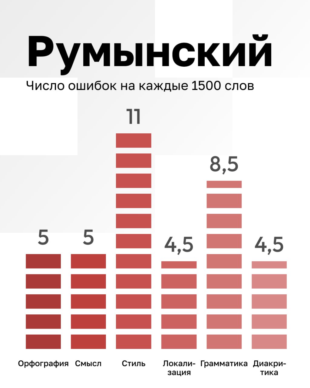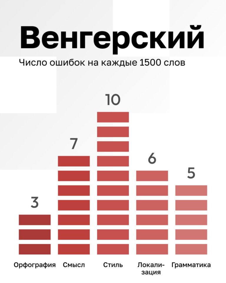 Recopilamos estadísticas internas sobre la cantidad de errores en textos de IA en 1500 palabras en diferentes idiomas. Muestra: 10 textos para cada idioma.