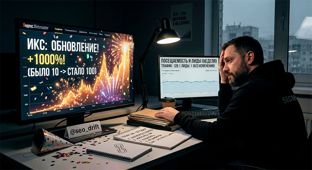 Суровая правда в том, что на реальный трафик и лиды этот скачок не повлияет никак. Если ваш ИКС внезапно взлетел с 10 до 100, количество заявок магическим образом не увеличится в десять раз.