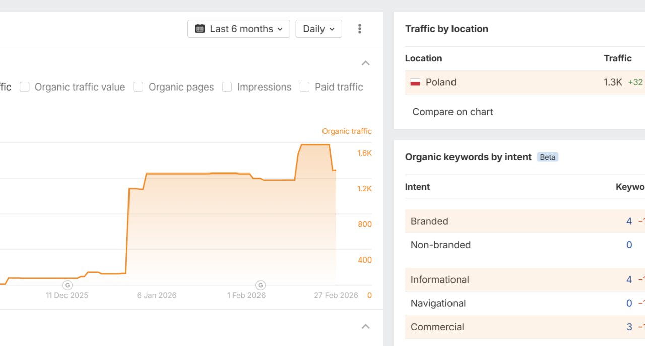 El artículo describe cómo una página en Trustpilot ayudó a elevar el sitio en los rankings de Google a pesar de la falta de actualizaciones de contenido y de actividad. Se comentan los resultados y las posiciones del sitio.