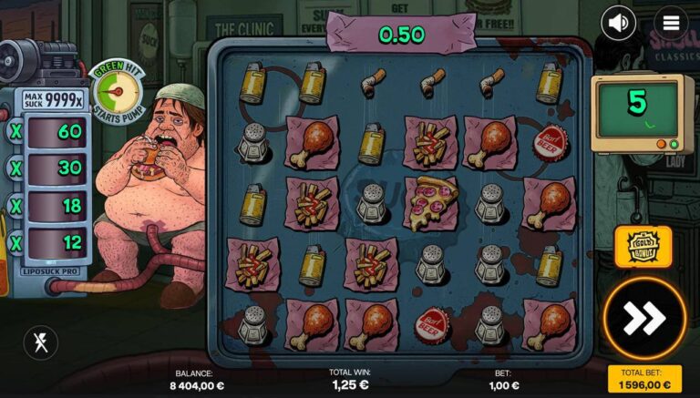 Hace un par de semanas escribí sobre la tragaperras de comida rápida de Nolimit, y aquí tenemos un nuevo lanzamiento de Shady Leidy sobre el mismo tema. Un hombre gordo come en un restaurante local donde la grasa para las hamburguesas se extrae mediante liposucción de otros glotones.