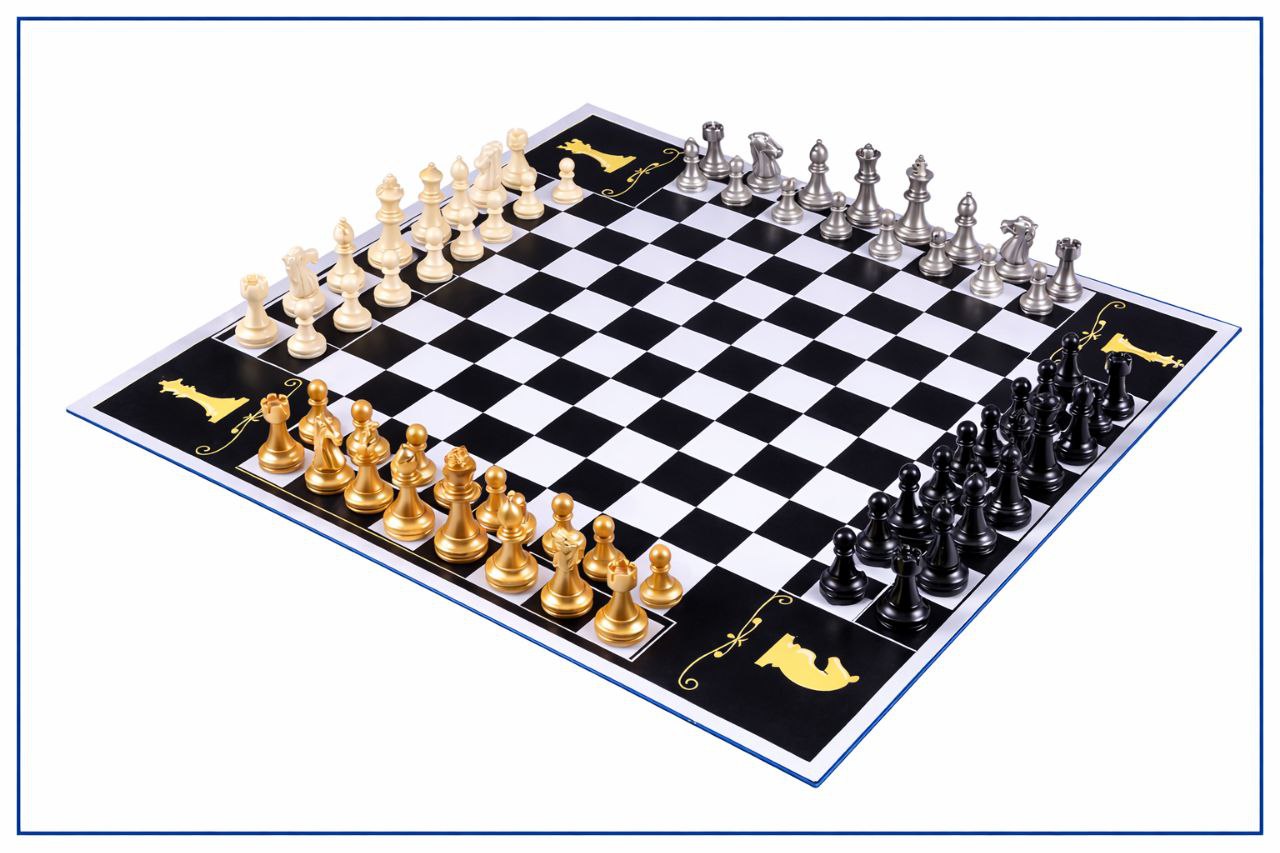 La photo montre le jeu d'échecs à 4 joueurs. Contrairement aux échecs classiques, il existe un nombre astronomique de combinaisons. Au cours de la partie, les camps peuvent s'unir, se trahir, etc. Le classique «tous contre tous». Les grands noms de l'iGaming jouent exactement à ce type de jeu.