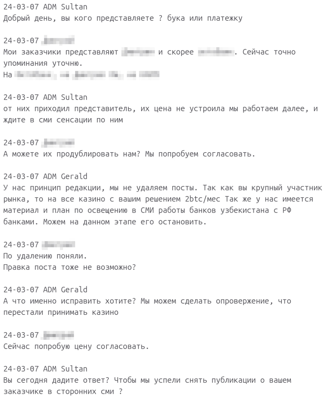 Следствие зафиксировало «white list» компаний, плативших за неразмещение компромата, а также отдельный чарджбэк-проект, использовавшийся для давления на платежки и отключения терминалов конкурентов. После задержаний администраторов один из участников получил более 10 000 USDT на выезд из России.