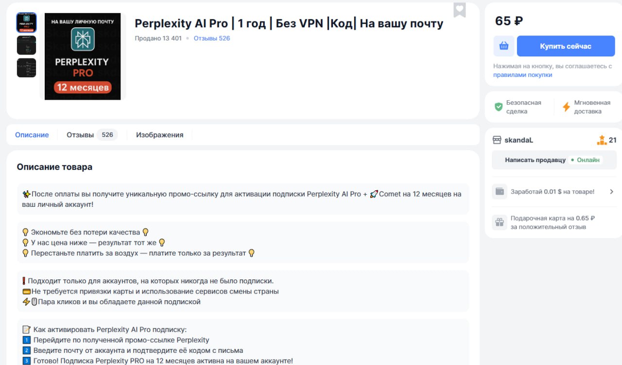 И тут я уперся в лимиты Perplexity… в прошлый раз брал доступ на год за 120 рублей, решил взять себе второй акк.