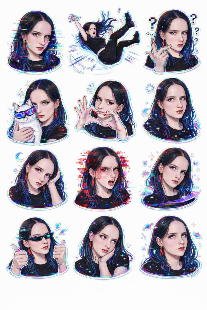 Criamos um conjunto vibrante de adesivos baseado em uma fotografia de uma pessoa real. Para fazer um semelhante, escolha o modelo Nano Banana 2 e use nosso prompt pronto:⤵️