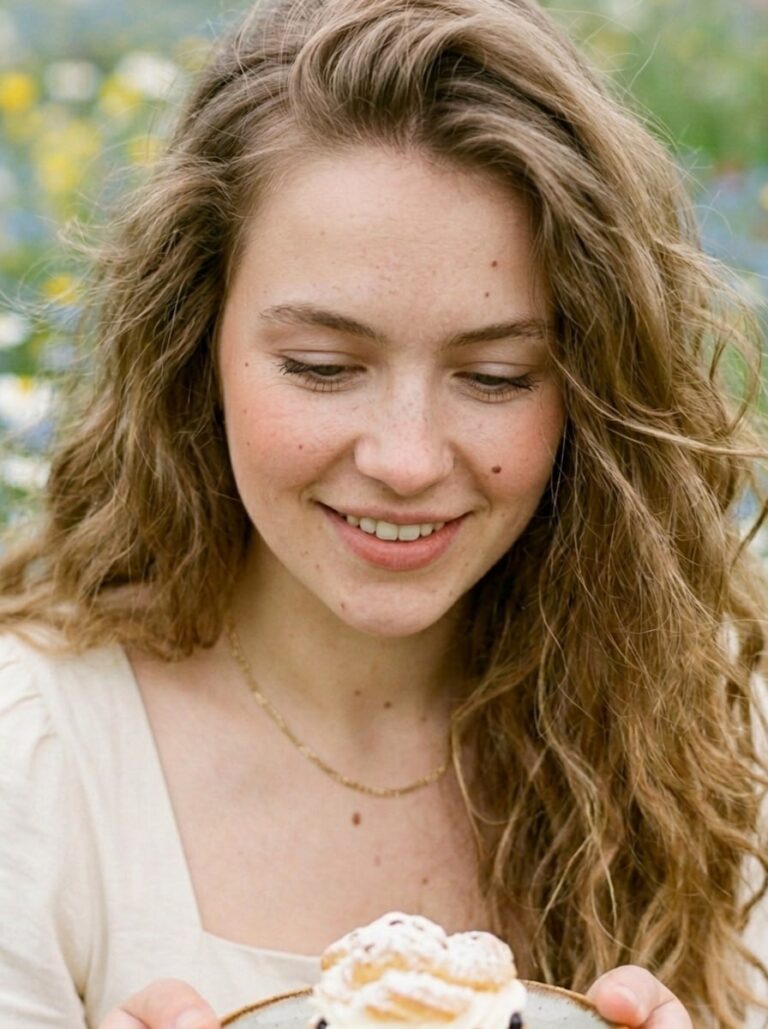 «Живое лицо с мягкой асимметрией черт, лёгкими веснушками и маленькой родинкой на щеке, натуральная кожа с текстурой…