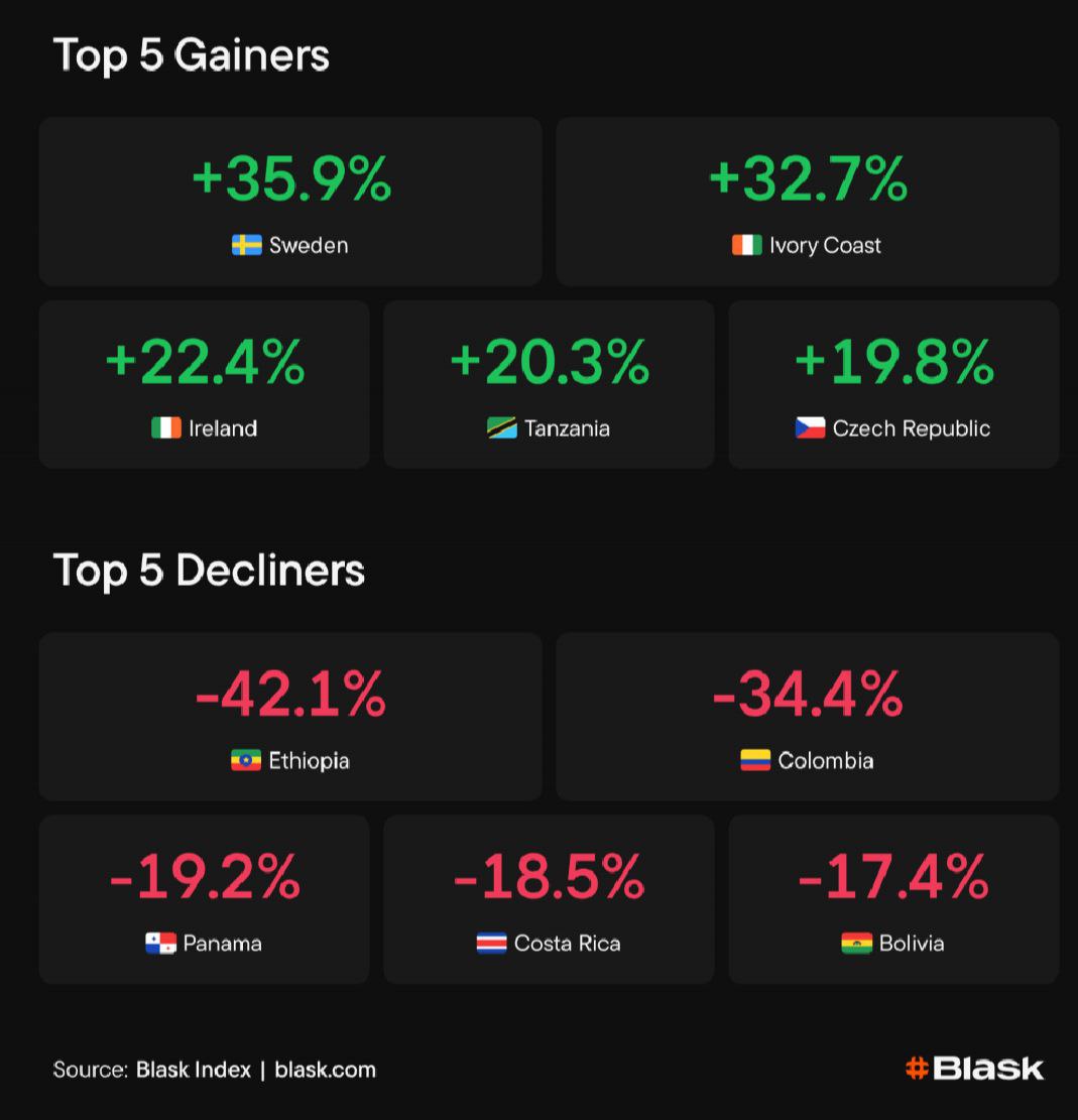 На прошлой неделе (22-28 декабря) в тренды iGaming-рынка залетело несочетаемое: Швеция и Кот-д’Ивуар. Эти 2 страны показали самый большой прирост Blask Index.