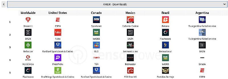 В Мексике лидирует Caliente Casino, рядом — стриминговый сервис с беттингом DAZN. В пяте…