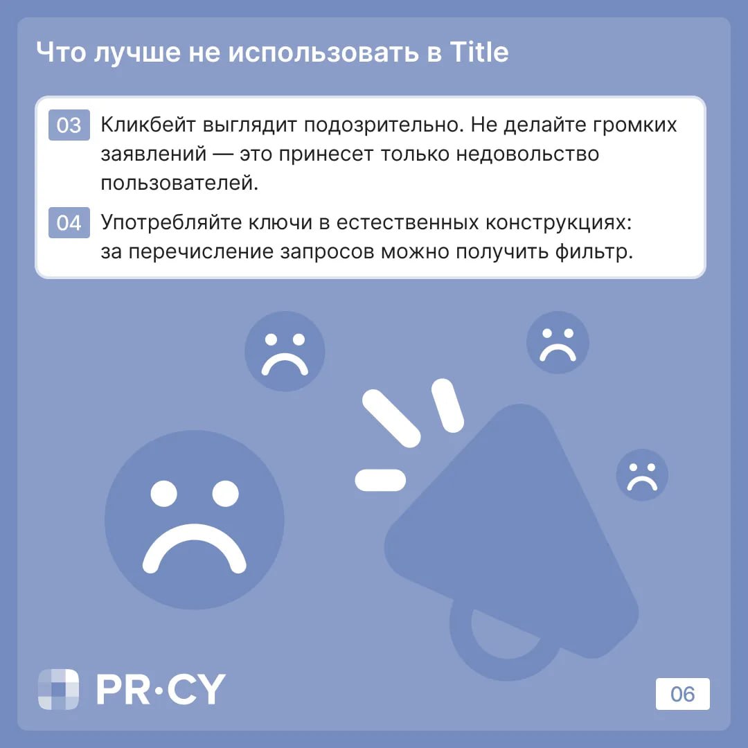 Что не стоит использовать в Title ✍️