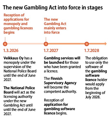 Прием заявок на лицензии стартует 1 марта 2026 года, запуск регулируемого iGaming-рынка намечен на 1 июля 2027. До завершения переходного этапа Veikkaus останется единственным оператором онлайн-игр.
