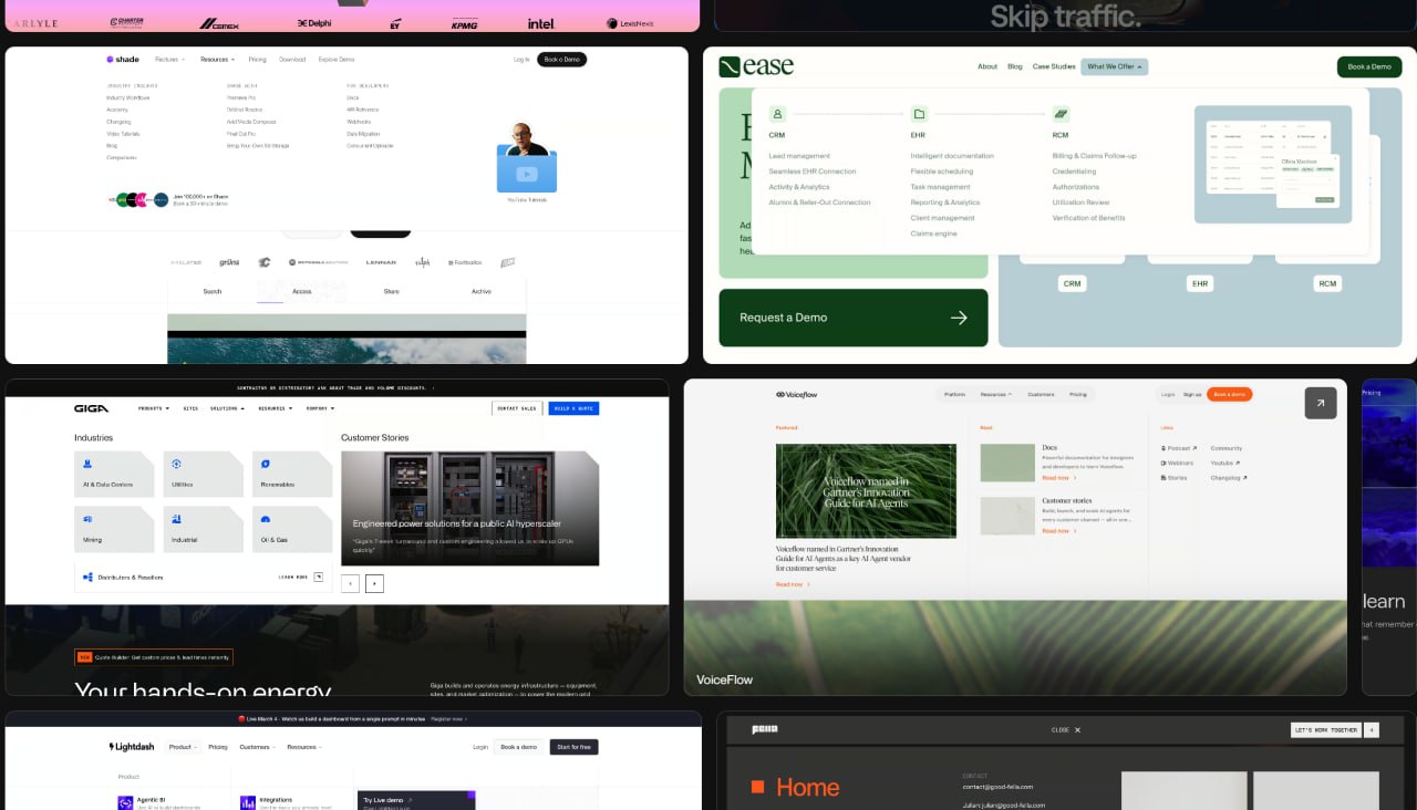 Помогут узкоспециализированные галереи, которые предлагают идеи для дизайнов разных элементов сайта. Они собирают лучшие решения со всего интернета.