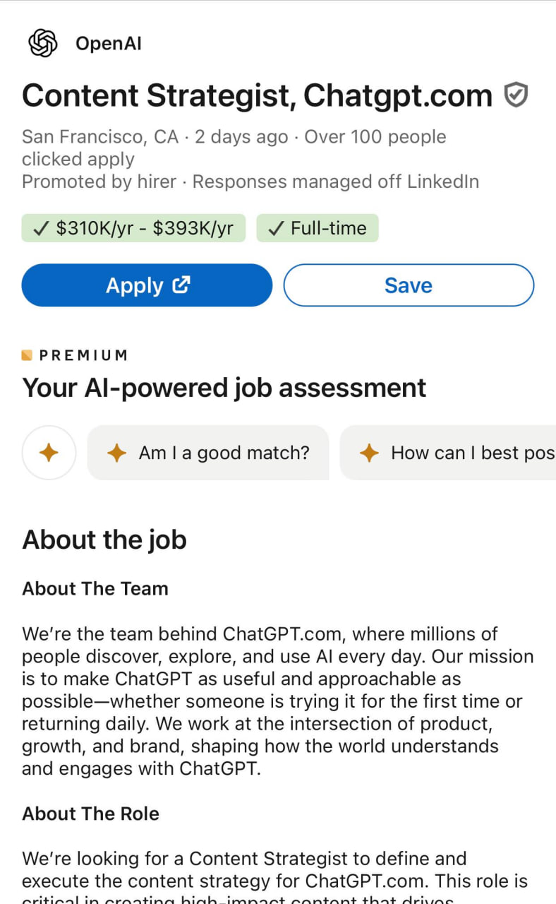OpenAI: Требуется контент-стратег за много денег.