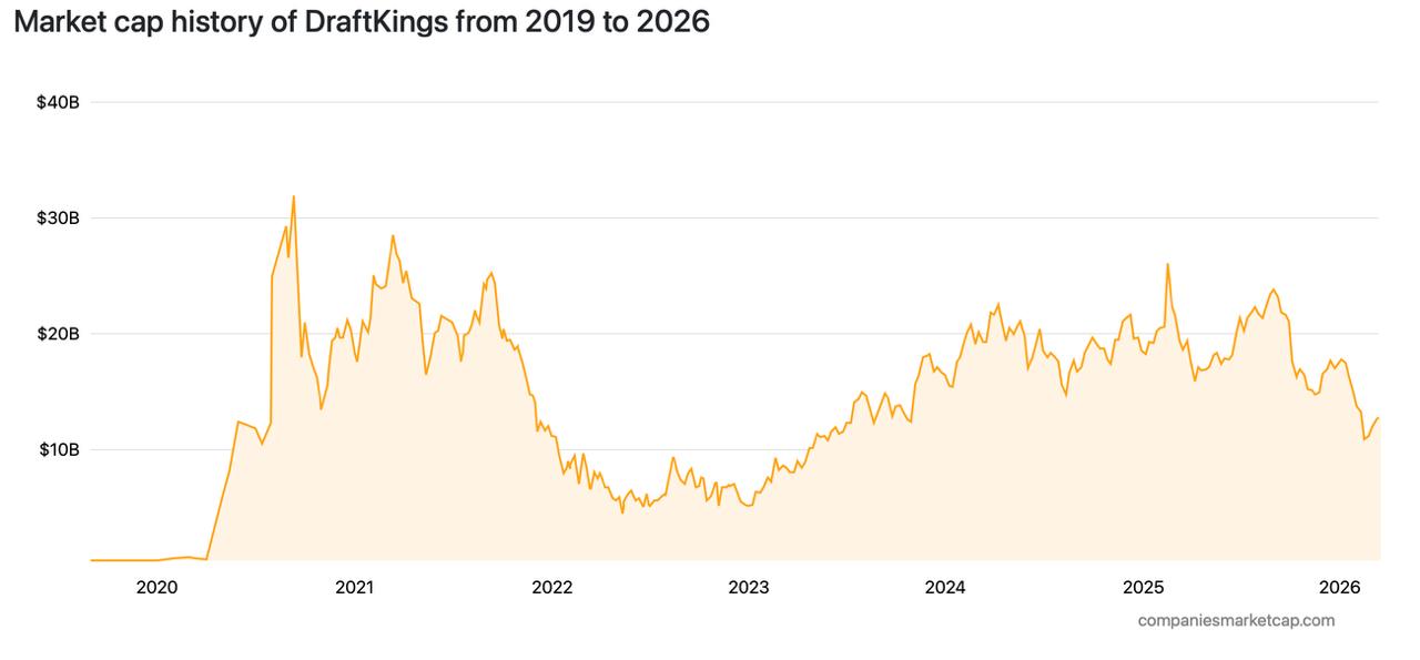 Капитализация Draftkings сократилась вдвое за последние полгода