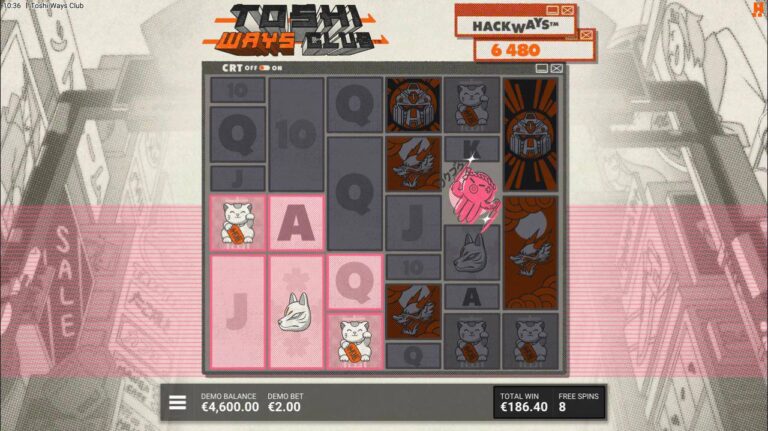 Главная фишка — линии с заблокированными символами в виде шишек ганжубаса. Если выпадает зажигалка, бошки сгорают и раскрывают одинаковый символ. Есть специальные шишки (фиолетовые и золотые), если они сгорают — на поле из бонга вылетает накуренный wild-слон