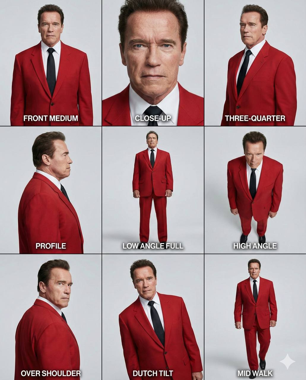 Ракурс съёмки в Nano Banana Pro — сетка 3×3 с подсказками.