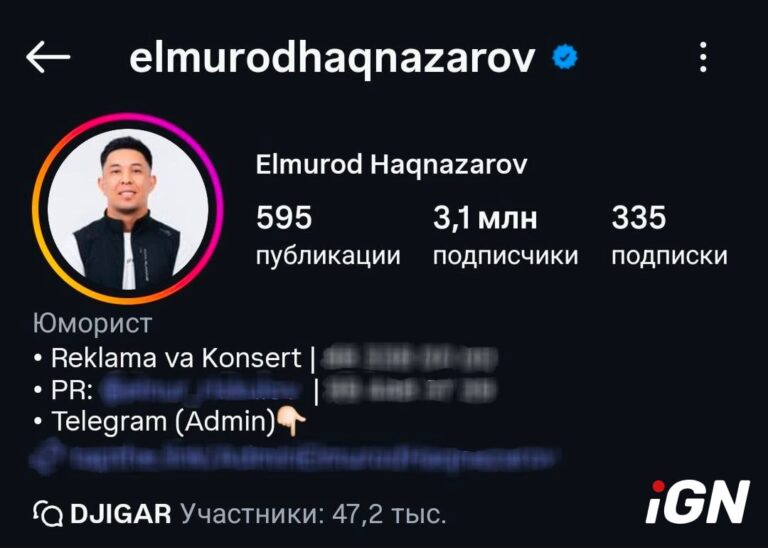 Комитет по конкуренции Узбекистана выявил в соцсетях дипфейки с телеведущим Элмуродом Хакназаровым (elmurodhaqnazarov, 3,1 млн подписчиков в Instagram), блогерами Дильшодом Назаровым (dili.mе, 5,8 млн подписчиков в Instagram) и А. Абдурахмоновым (abdurahmon_mufid, 3,2 млн подписчиков в Instagram), рекламирующие crash-игру «Chiken Road» (InOut Games) с обещаниями гарантированных выигрышей.