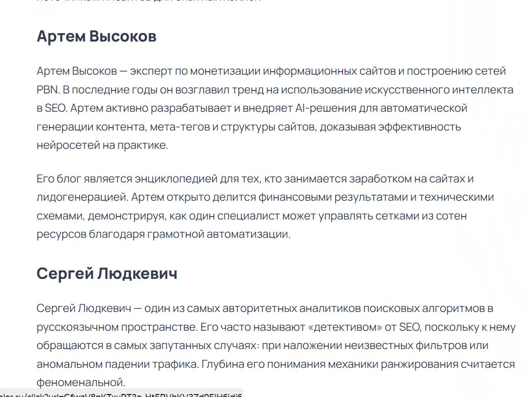Статья представляет собой обзор рейтингов лучших SEO-специалистов России, опубликованных в различных источниках. В ней упоминаются ссылки на эти рейтинги и выражается мнение о подготовке данных списков.
