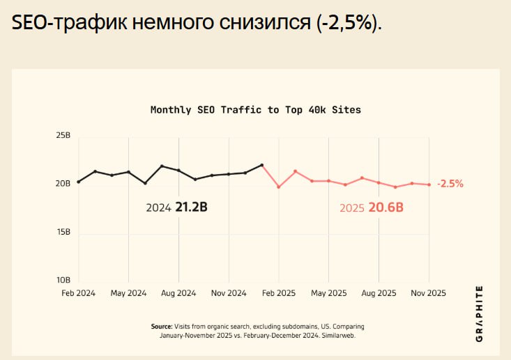Компания Graphite совместно с Similarweb провели исследование данных более 40 000 крупнейших сайтов в США, чтобы проверить популярный тезис о резком падении органического трафика.