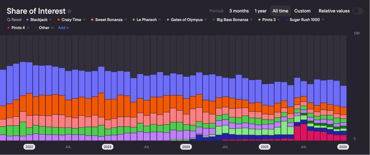 Рейтинг по появлению на main page казино, в скобках — lobby GVR (game visibility rank, чем ниже показатель — тем выше по позиции игра):
