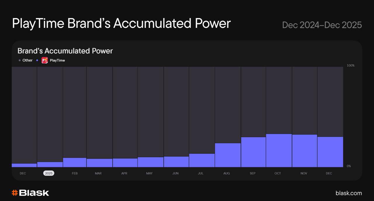В новых условиях быстрее всего сориентировался оператор PlayTime. Его показатель BAP (оценка доли рынка) — вырос с 4% в декабре 2024 года до 30,4% год спустя.