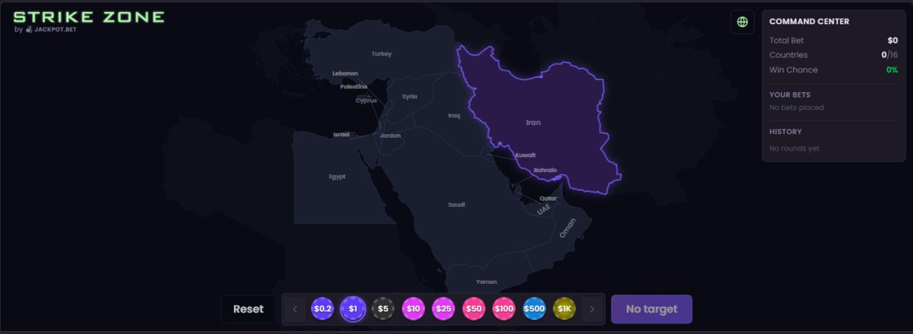 Вопиюще, да? В онлайн-казино Jackpot(.)bet появилась игра Strike Zone, посвящённая войне на Ближнем Востоке.