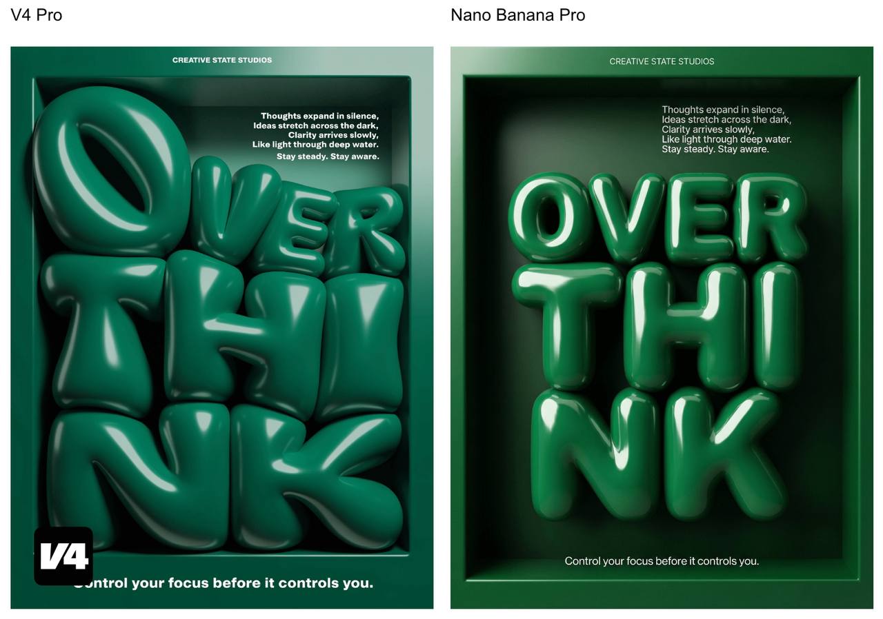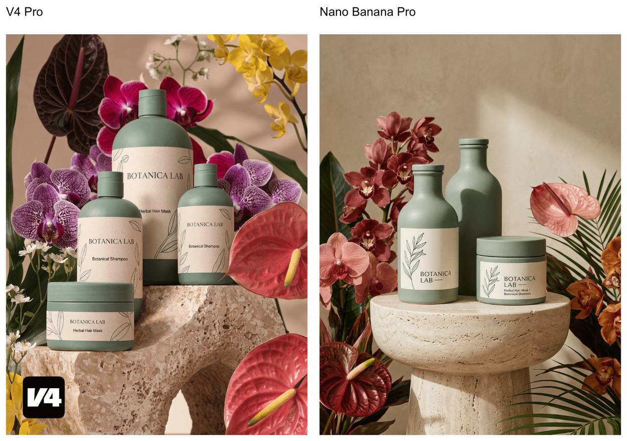 Картинки со сравнением V4 Pro vs Nano Banana Pro — из официального промо. Показательно, что сравнивают именно с «прошкой»: значит, это до сих пор лидер и уровень, к которому все стремятся.